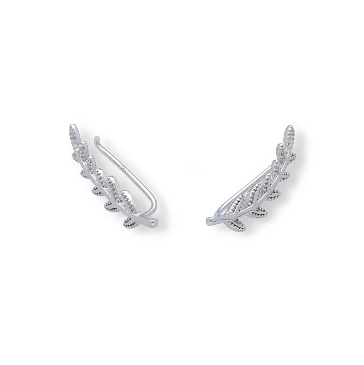 Pendientes plata de ley 925 lisa trepadores en forma de rama con hojitas de 20,5mm de largo.