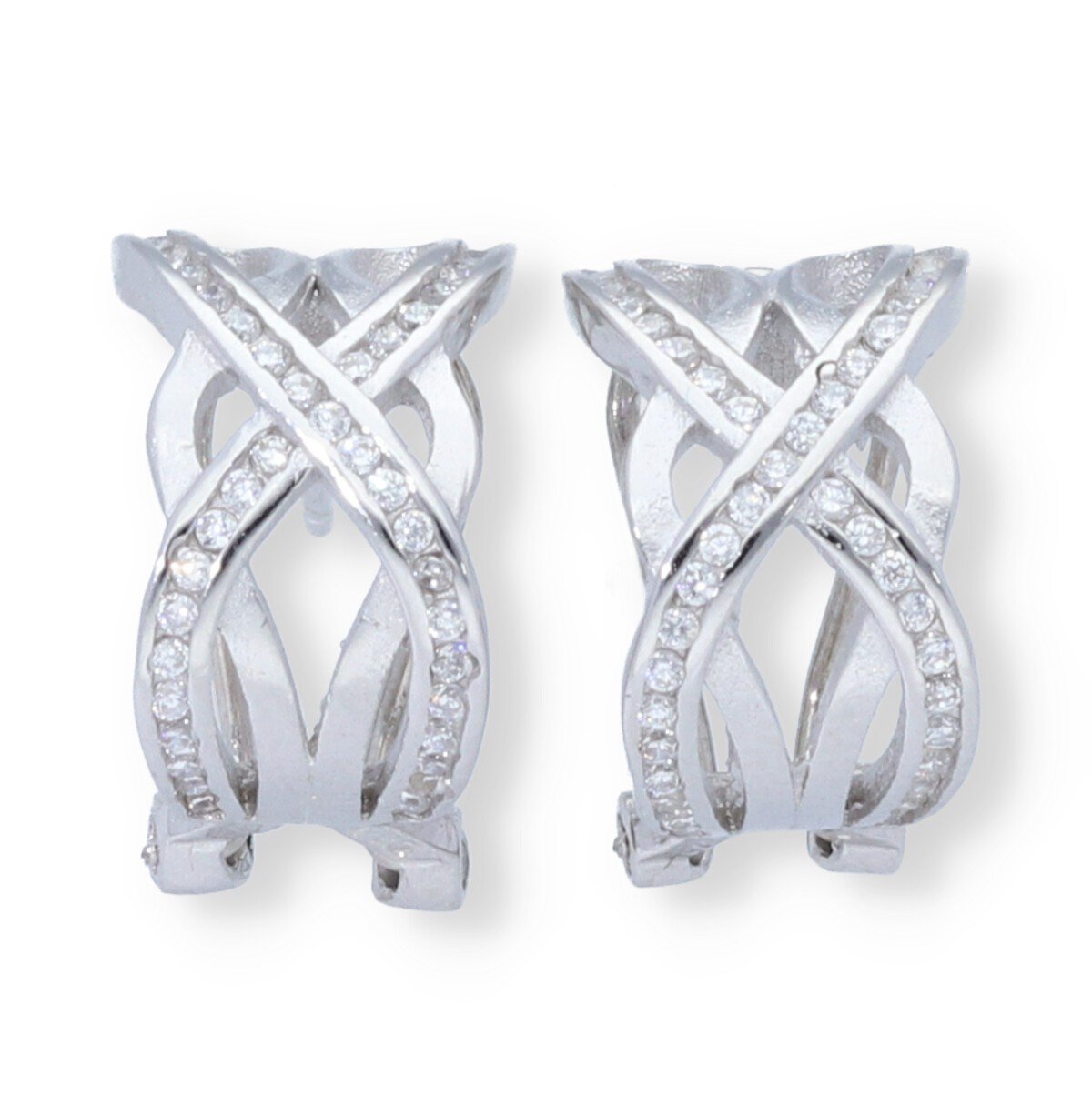 Pendientes (Semiaro) plata de ley 925 semiaro con troquelado de ondas de circonitas de 8x15mm y cierre omega.
