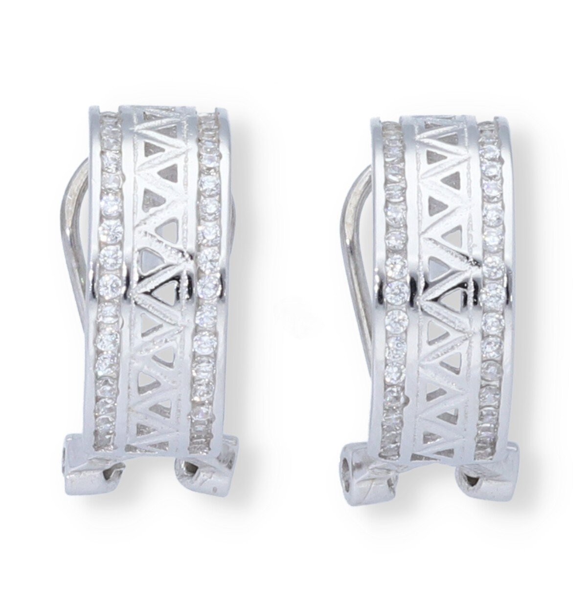 Pendientes (Semiaro de circonitas) plata de ley 925 semiaro con triángulos troquelados de circonitas 8x15mm y cierre omega.