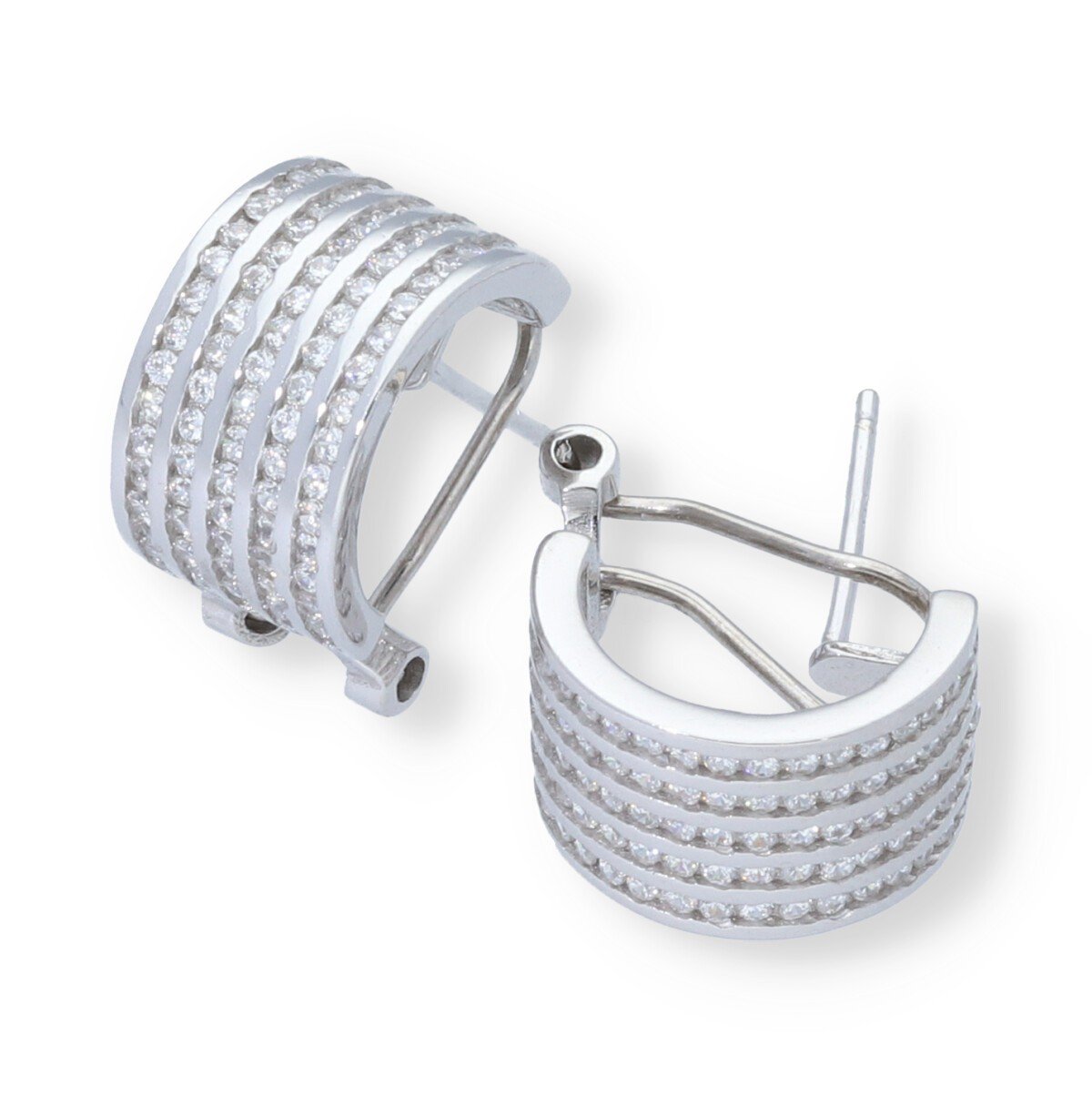 Pendientes de plata de ley 925 semiaro con hilos de circonitas de 8x15mm y cierre omega.
