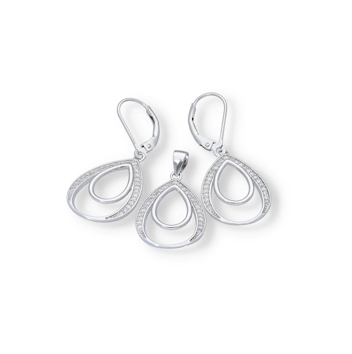 Conjuntos plata de ley 925 colgante y pendientes con circonitas en forma de gota de 23,5mm.