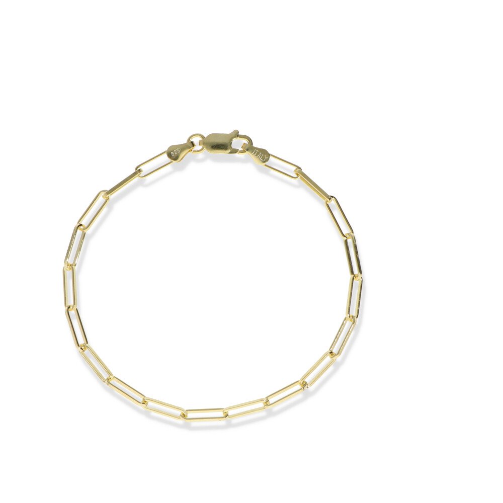 Pulsera plata de ley 925 rolo flat 18cm con baño de oro de 18 quilates y cierre reasa.
