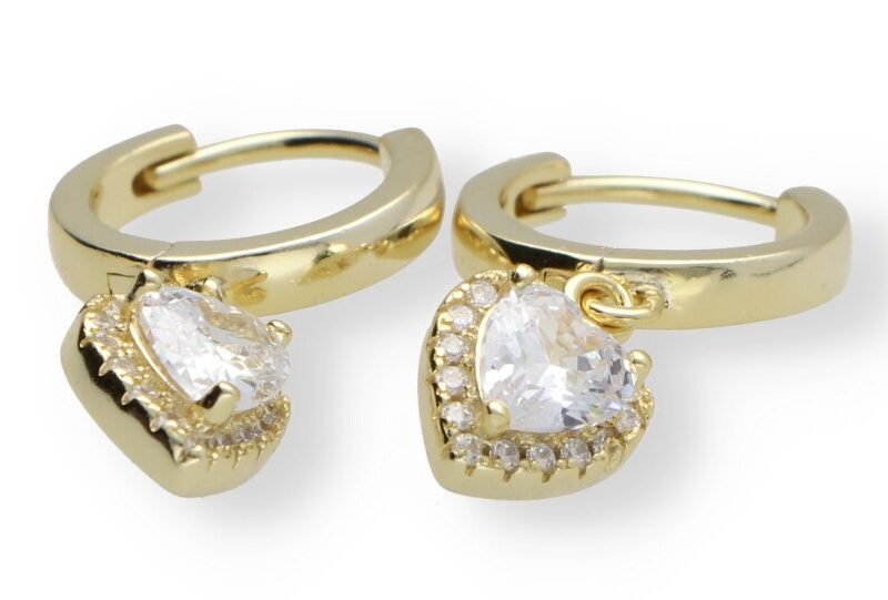 Pendientes dorados con circonita en forma de corazón