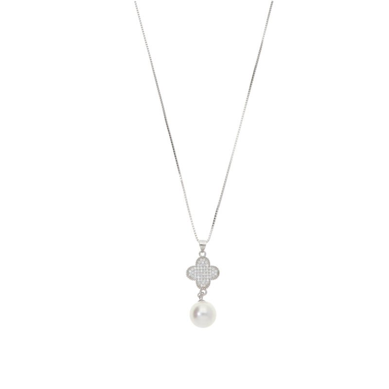 Gargantilla con Colgante de Trébol y Perla Decorada con Circonita