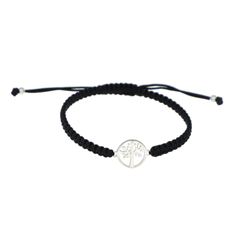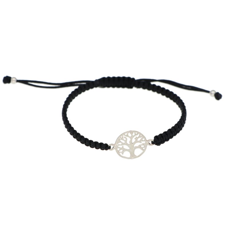 Pulsera Macramé Negra: Colgante Árbol de la Vida Plata Elaborado